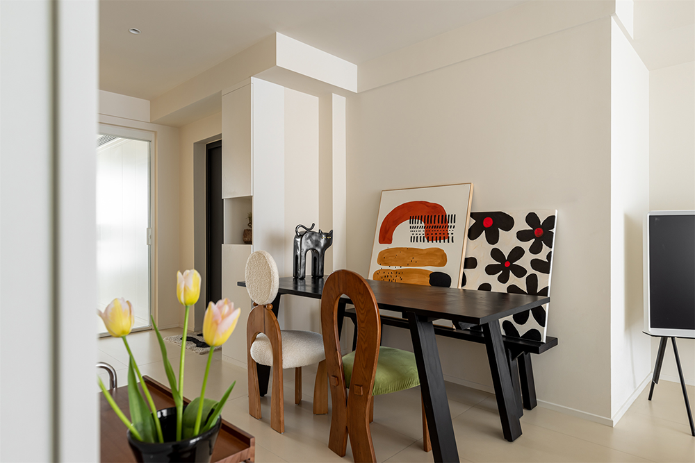 屋主家墙顶颜色通刷,在清淡之间呈现出软糯的温柔质感,透出优雅恬静的空间魅力。相比于白色,多了一分醇厚;相比与咖色,少了一分浓烈。这就是本案奶油风的魅力所在吧!