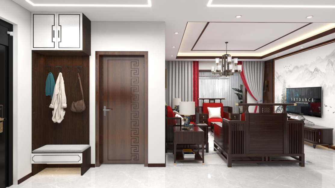 · 胡桃色的空间主色调,软装是红色点缀,质感细腻的高级感,营造的庄重与优雅气质。